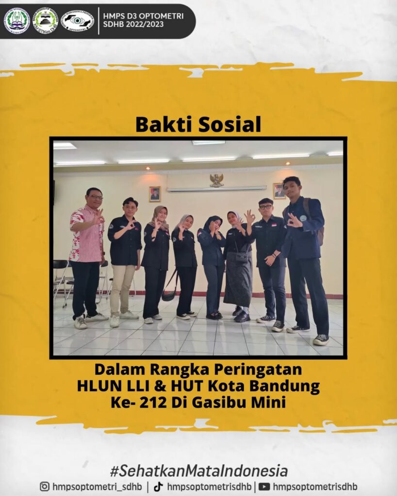 Dalam rangka memperingati Hari Lanjut Usia Nasional (HLUN) LLI dan HUT Kota Bandung ke-212, HMPS D3 Optometri turut berpartisipasi dalam kegiatan Bakti Sosial di Gasibu Mini. Kegiatan ini difokuskan pada pelayanan pemeriksaan mata gratis bagi masyarakat, khususnya para lansia, sebagai bentuk kepedulian terhadap kesehatan penglihatan. Melalui kegiatan ini, mahasiswa optometri berkesempatan untuk mengaplikasikan ilmu sekaligus […]